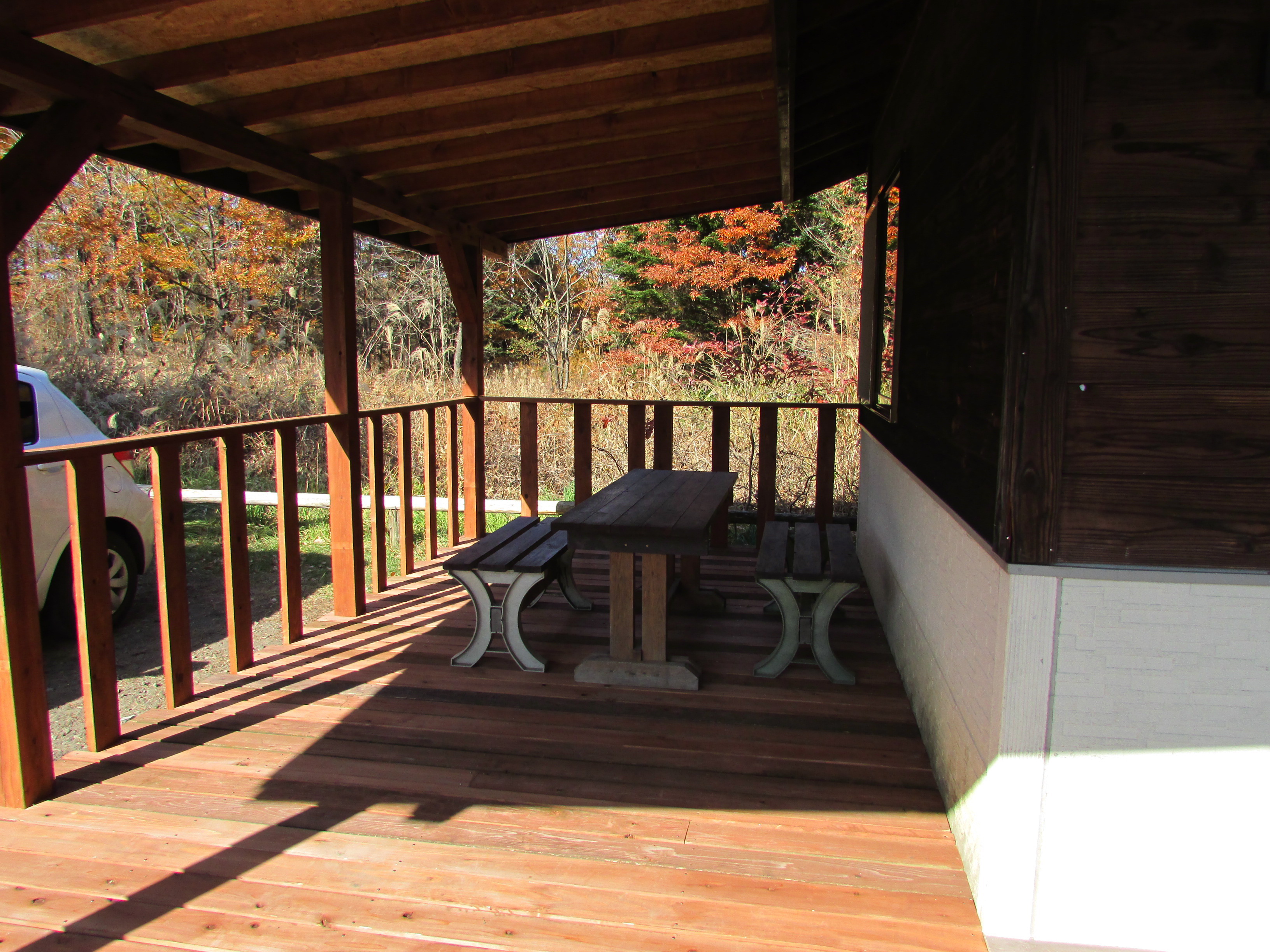 雨の日でも安心のウッドデッキ付。 |
