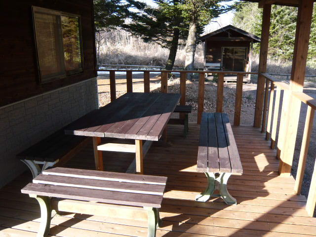 雨の日でも安心のウッドデッキ付。 |
