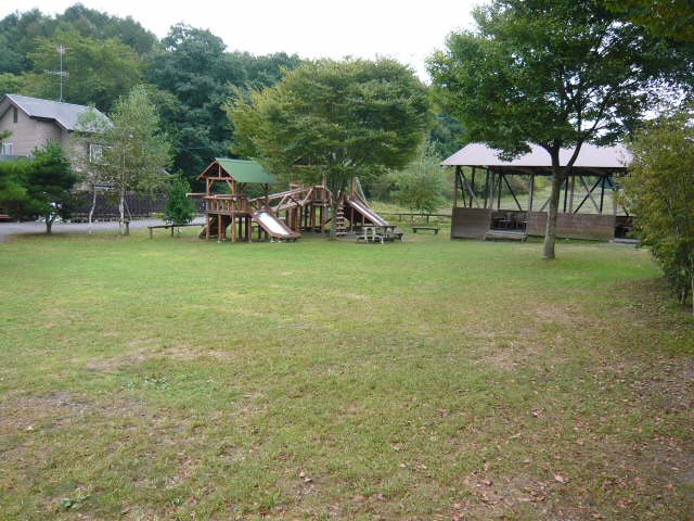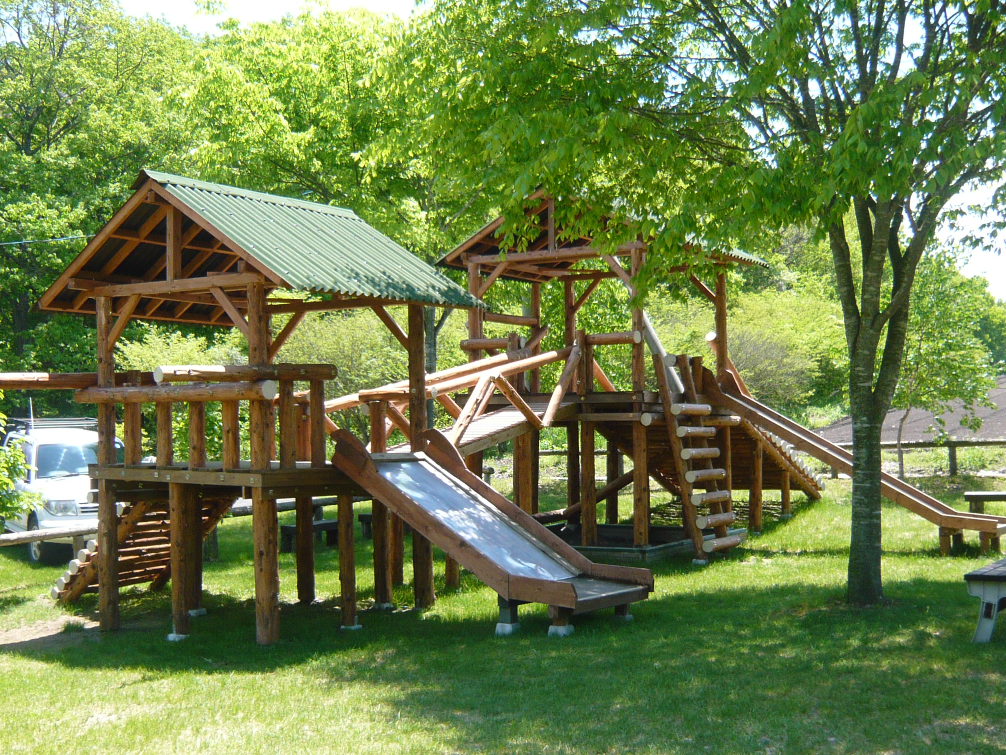 木製遊具と芝生広場